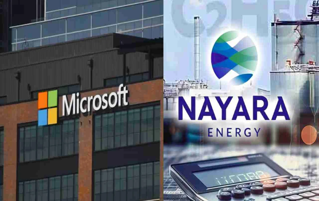 Microsoft cited Russian ownership links—Nayara is partly owned by Rosneft.